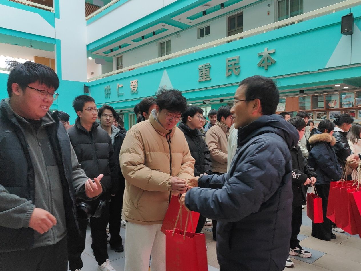 随后,学院领导和辅导员分组将礼包递到学子手中,并送上贴心叮嘱:调整好作息,以最佳状态应考”“相信自己的积累,正常发挥就是胜利。学子们接过沉甸甸的礼包,脸上洋溢着感动的笑容,纷纷表示要将这份关怀转化为备考动力。打开礼包看到每件物品的寓意,真的特别暖心。”“学院的这份支持让我们知道,我们不是一个人在战斗,一定会带着这份鼓励全力以赴。