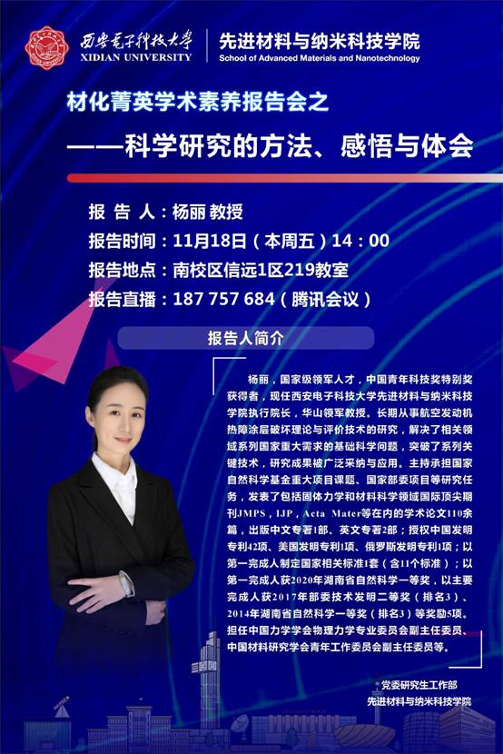 报告题目:材化菁英学术素养报告会之——科学研究的方法、感悟与体会