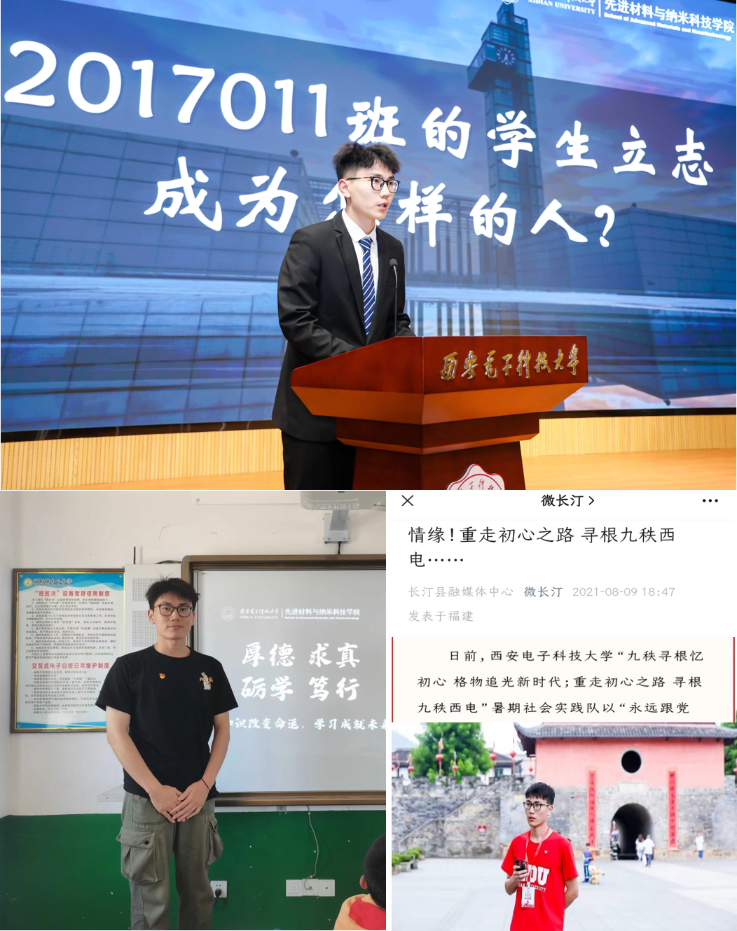 除了学习之外,董亚霖在课余时间也会积极从事学生工作及志愿活动。他担任2017011班的班长,代表班级在全校的舞台上参加答辩,获评“十佳标兵示范班”;作为20200902团支部的支书,他开展主题团日活动获校级表彰支部获评“五四红旗团支部”;作为学校暑期实践队成员,他赴福建长汀开展实践,成果被当地电视台报道、公众号推送,对我校起到了积极的宣传作用;作为学校第五批学生资助宣传大使,他利用暑期给学弟学妹讲解资助政策,解答他们的疑惑作为学院的党员代表,他前往蒲城县高阳中心小学开展支教帮扶活动,给小朋友们讲解电池原理,培养他们的学习兴趣……