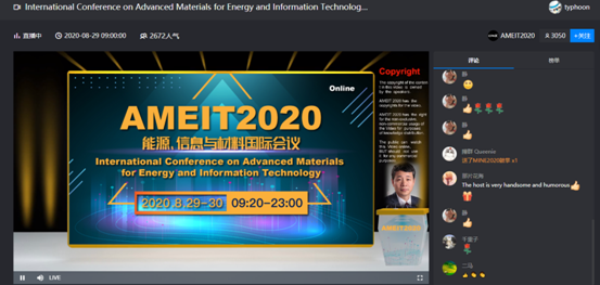 (通讯员:王悦 赵雅倩)2020年8月29日-30日,由郝跃院士、王中林院士、Paul S. Weiss院士以及Lars Samuelson院士等知名专家发起并任主席的能源、信息与材料国际会议(International Conference on Advanced Materials for Energy and Information Technology,简称AMEIT2020)在3044永利集团集团成功召开。,来自亚洲、欧洲、北美、澳洲的26位知名院士、专家作了精彩报告,参与互动人数达2.04万人次。本届会议克服疫情造成的困难,通过在线形式提供国际化交流高端平台,促进能源领域基础学科之间深层次交流与融合,推动未来洁净能源的发展,进一步推进引领能源信息与材料研究的创新。