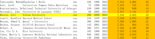 Ajit Khosla教授在全学科单年度科学影响力榜单的排名