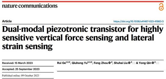 Ge, R., Yu, Q., Zhou, F., Liu, S. & Qin, Y. Dual-modal piezotronic transistor for highly sensitive vertical force sensing and lateral strain sensing. Nat. Commun. 14, 6315 (2023).
