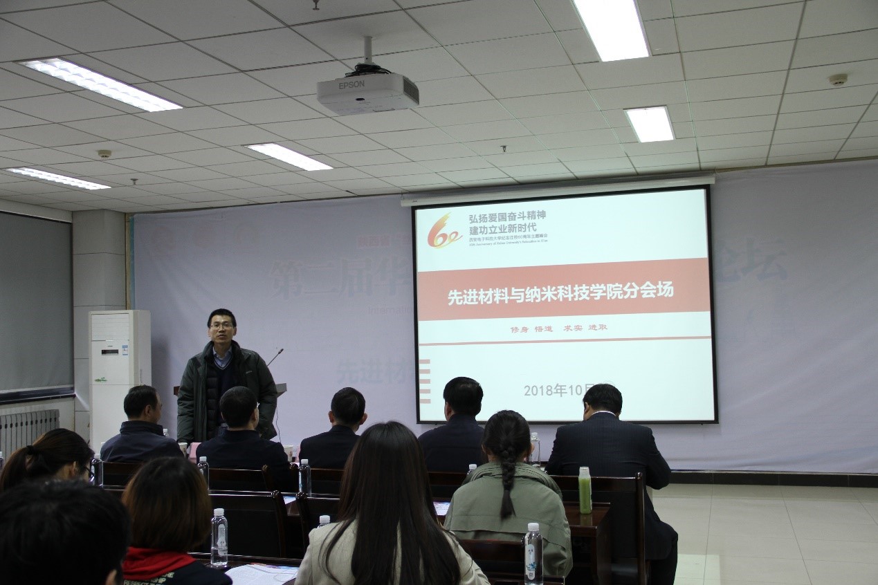 秦勇教授首先代表学院对4位专家学者的到来表示热烈欢迎,并就中南大学刘文胜教授、中国工程物理研究院新能源研究所张文华教授、空军工程大学的马华教授以及北京理工大学吕勇军副教授等个人情况进行了简短介绍。在学术报告环节,刘文胜、张文华、吕勇军立足自己的研究领域,分别作了题为《金锡共晶合金的凝固组织调控与变形机制研究》、《新型太阳能材料与电池应用研究》、《非晶态体系的弛豫动力学研究》的学术报告,将自己最新研究成果和进展进行了分享,并和与会师生进行了深入探讨,交流了材料科学发展的新思想、新理论和新应用,共同探索材料学科最新的发展趋势。报告会上掌声不断,师生们沉浸在浓郁的学术氛围、激烈的思想碰撞和交流中。杨如森教授主持了学术报告环节。