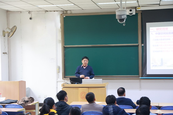 首先,邓子辰教授为我院师生带来题为《超大型航天器在轨动力学控制与空间组装》的报告。邓教授主要介绍了其课题组在超大型航天器在轨运行、空间组装两个阶段的动力学与控制方面研究进展。针对超大型航天器在轨运行阶段、空间组装阶段等一系列问题,提出了超大型航天器的轨道-姿态-结构全耦合动力学建模方法、组装模块设计、动力学建模、轨迹规划与轨迹跟踪控制的初步探索。报告从宏大的航天背景入手,辅之以邓教授深入浅出的讲解,为在场师生带来了一场精彩的学术盛宴。
