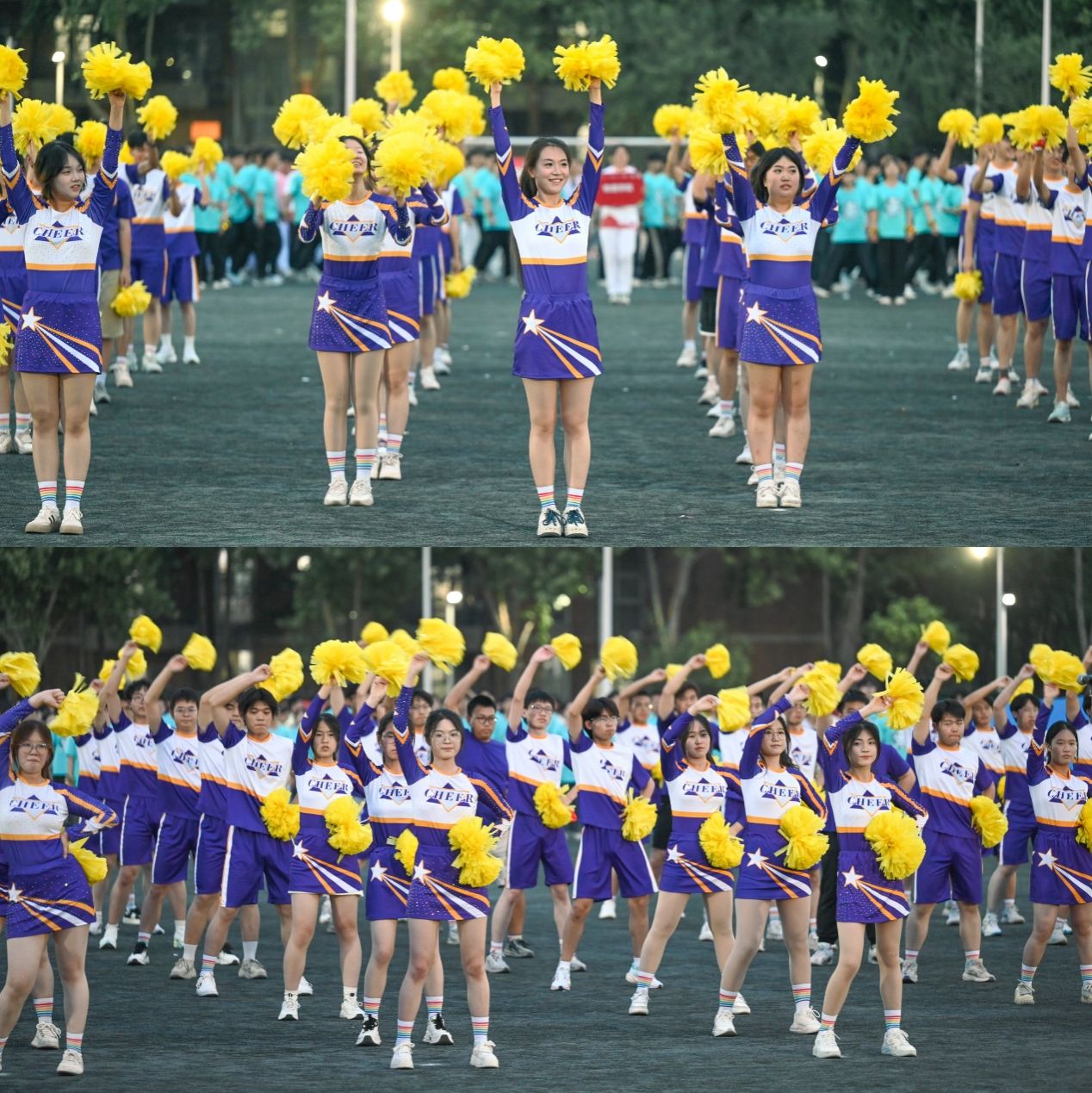 “动作整齐如一人”的背后是21个夏夜的汗水与坚持。为呈现最佳舞台效果同学们自4月下旬起每晚在操场练习,对细节追求精益求精、对效果呈现严格把关把,从手臂抬举的高度到转身角度的统一,从队形变换的流畅度到“XDU”图案的精准卡位,每个环节都反复打磨。夏夜闷热,蚊虫环绕,衣服被汗水浸透更是家常便饭,但团队始终以轻松乐观的心态面对挑战,不惧困难。