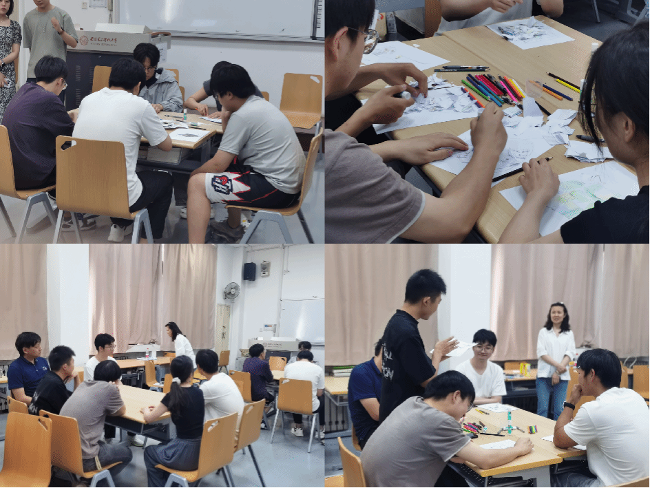 随后,活动进入艺术治疗的核心环节。同学们伴随着轻松治愈的音乐进入到深入冥想之中,畅想生活与科研中的美好画卷。在简单的绘画之后,同学们相互分享生活中的烦恼与喜悦,并为小组成员的绘画作品增色添彩,随后在小组分享中,同学们家围绕实验瓶颈、论文压力等话题展开交流,并通过为彼此画作添加“能量符号”传递支持。最后,同学们将带有消极情绪的纸条投入情绪垃圾桶,彼此之间互相祝福,将之前的一些不良情绪转化为积极的能量。