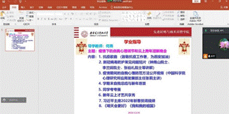 学业导师持续发挥在本科生学业发展中的“导学”作用和疫情防控期间的“育人”作用,努力帮助学生解决学业困惑、焦虑和迷茫,实现“教书”与“育人”的紧密结合,帮助学生积极调整心态,激发昂扬乐观的动力,以奋发有为的精神面貌战胜学业和生活的挑战。