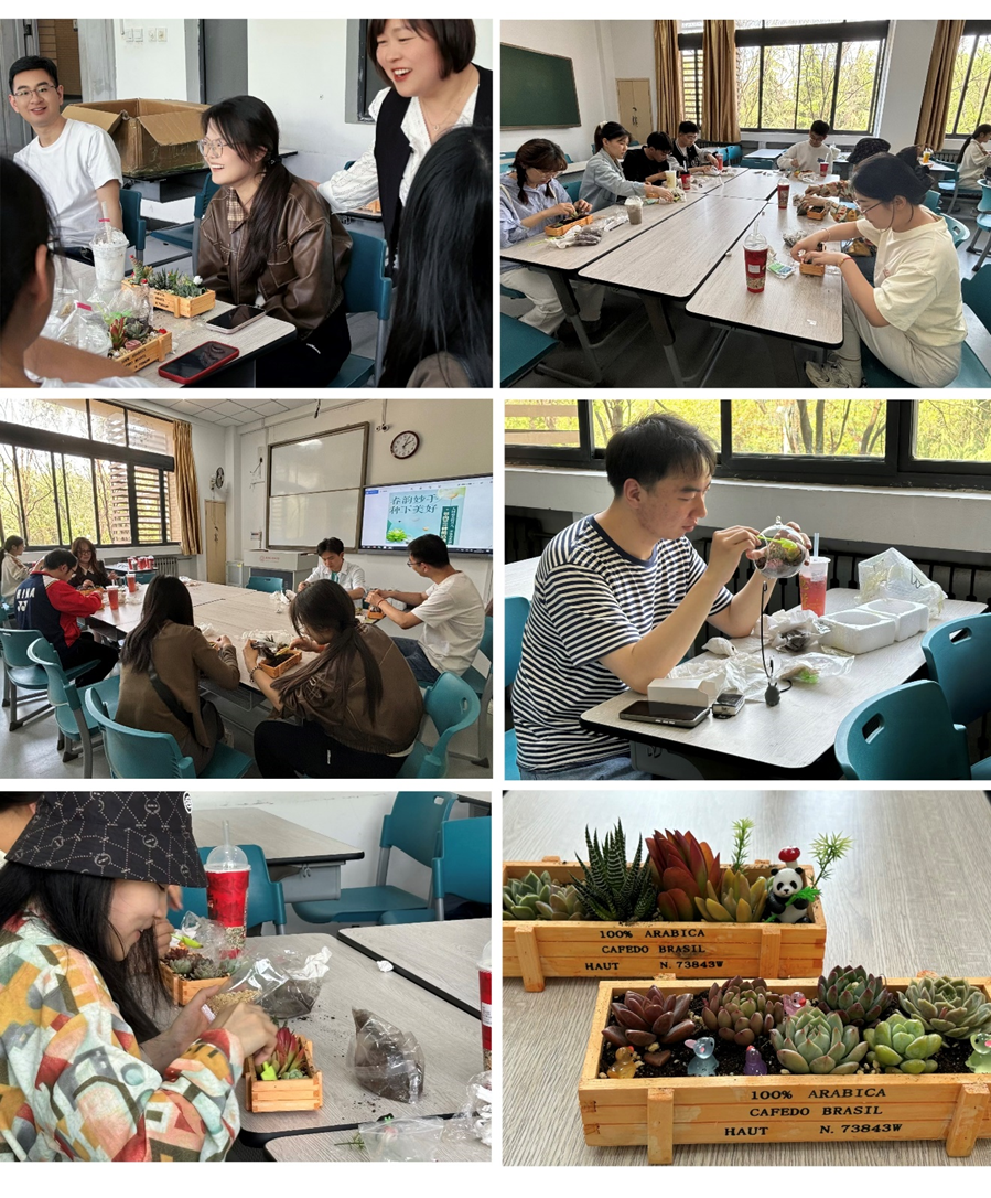 最后活动在欢声笑语中落下帷幕,同学们尽情享受着多肉创作带来的成就感,纷纷举起作品拍照留念,记录下这个美丽的瞬间。这一活动,让同学们在细碎的时光研磨中品味到生活的明媚与浪漫。