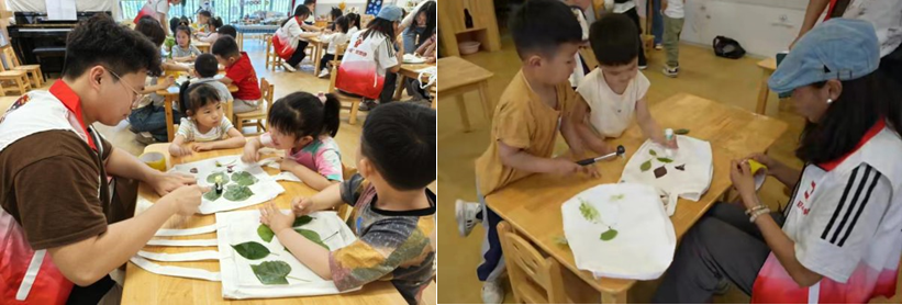 (通讯员 樊垚)为弘扬志愿精神,传承非遗文化,近日永利3044集团官网舆香志愿队带领本院4个团支部13名志愿者前往高新区第五十三幼儿园开展非遗植物拓印活动。本次活动带领幼儿园100余名小朋友体验非遗植物拓印技艺和一系列有趣的科学实验,激发了孩子们对非遗文化的热爱和对探索科学奥秘的热情。