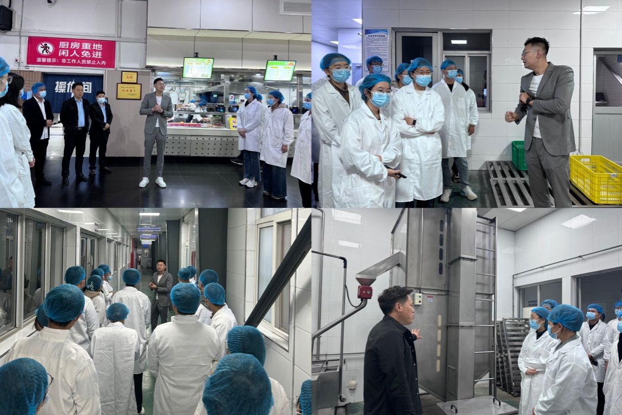 早餐供应时段,同学们根据丁香餐厅规范化管理要求统一穿着工作服、佩戴防尘帽与口罩进入后厨。韩睿副部长带领大家依次参观了食物配送处、菜品储存间、粗加工间、切配烹饪间、洗刷消毒间等区域,详细介绍了餐厅后厨各个工作区间的工作制度、运行情况和员工工作内容,讲解了原材料的储存、食品加工流程、食品留样、餐具消毒以及相关食品安全的规范操作。随后同学们来到学校中心厨房,这里作为南校区食堂米饭、馒头、面条等主食成品的供应、集散地,使用了效率高、科技化、精细化的大型烹饪设备,既保证了师生餐食供应,更把控了食品烹饪质量关。直观式、沉浸式的参观,加深了同学们对后勤餐饮专业化服务的了解,更了解到学校对食品卫生、食品安全的严格要求。