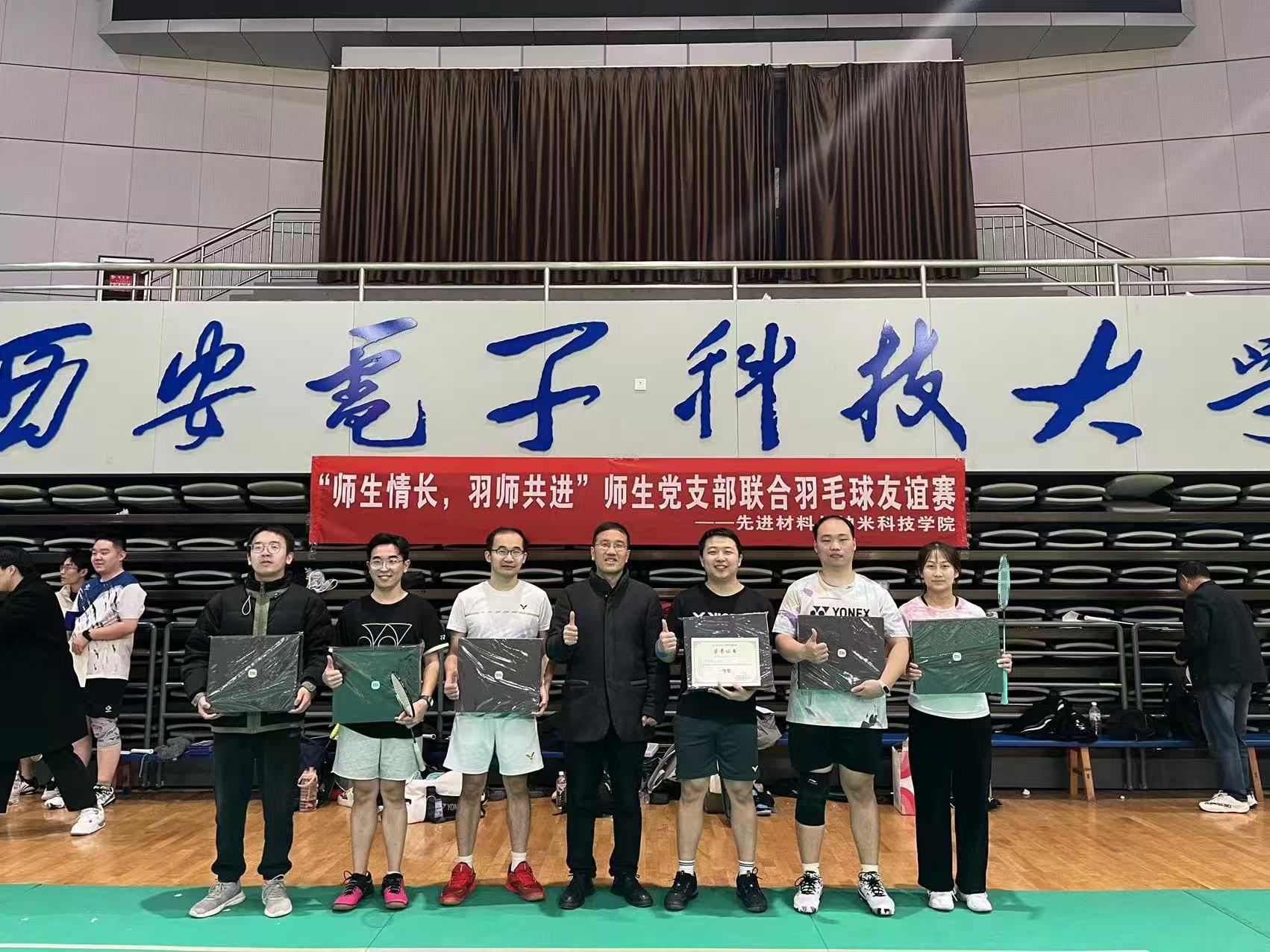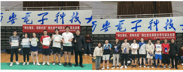 经过一晚上的激烈角逐,比赛的冠亚季军相继产生。在随后举行的颁奖仪式上,宋刚峰为获奖选手颁发奖状和证书。宋书记指出,此次师生党支部联合羽毛球友谊赛是学校加强师生党建工作与校园文化建设的重要举措,希望通过此类活动,进一步促进师生之间的交流合作,营造积极向上、团结和谐的校园氛围,为学校的高质量发展注入强大动力。