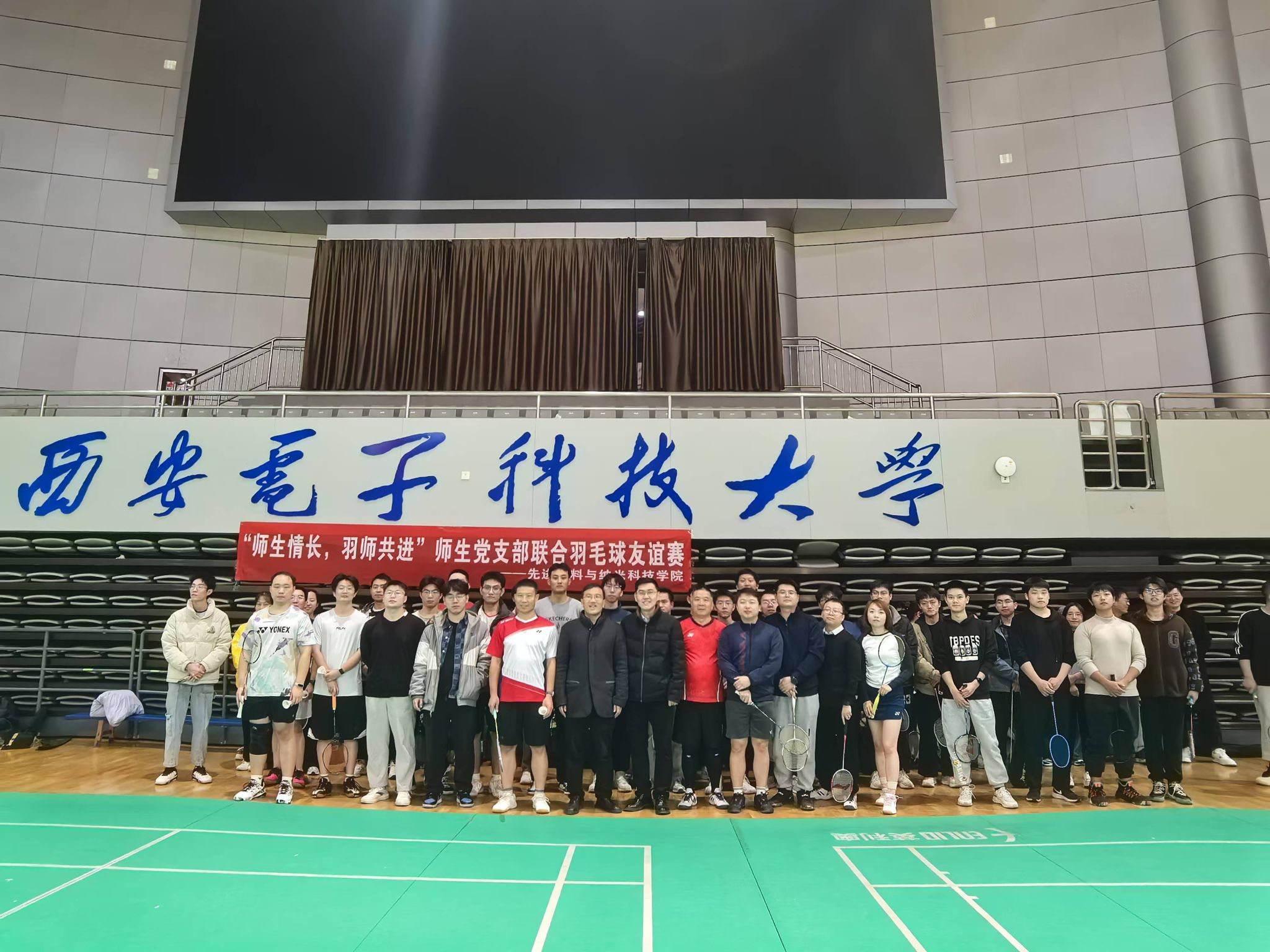(通讯员 王赛婧)2024年11月28日,在南校区远望谷体育馆,一场别开生面的永利3044集团官网师生党支部联合羽毛球友谊赛激情上演。此次活动以“师生情长,羽师共进”为主题,旨在通过体育竞技搭建师生互动交流平台,增进师生党支部之间的凝聚力与向心力,展现新时代师生的蓬勃活力与团结协作精神。六十余名师生参加了此次友谊赛,材料院党委书记宋刚锋、副院长杨如森和副书记陈刚三位领导到场为运动健儿们加油打气。