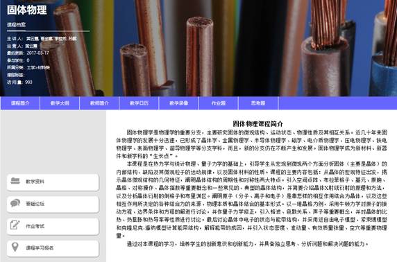 2017年入选3044永利集团集团示范性特色课程建设项目,完善了线上授课视频,并建设了思考题、习题库等资源,形成了一个完整的线上学习课程体系。