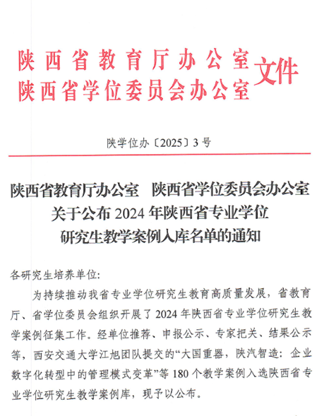 近日,陕西省教育厅办公室与陕西省学位委员会办公室联合公布了2024年陕西省专业学位研究生教学案例入库名单。先进材料与纳米科技学院胡英教授的教学案例《氢能时代绿氢技术的挑战》成功入选陕西省专业学位研究生教学案例库。这不仅是学院教学成果的又一重大突破,也是我院近年来成功入选的第三个优秀教学案例,充分彰显了学院在专业学位研究生培养领域的卓越实力与创新能力。