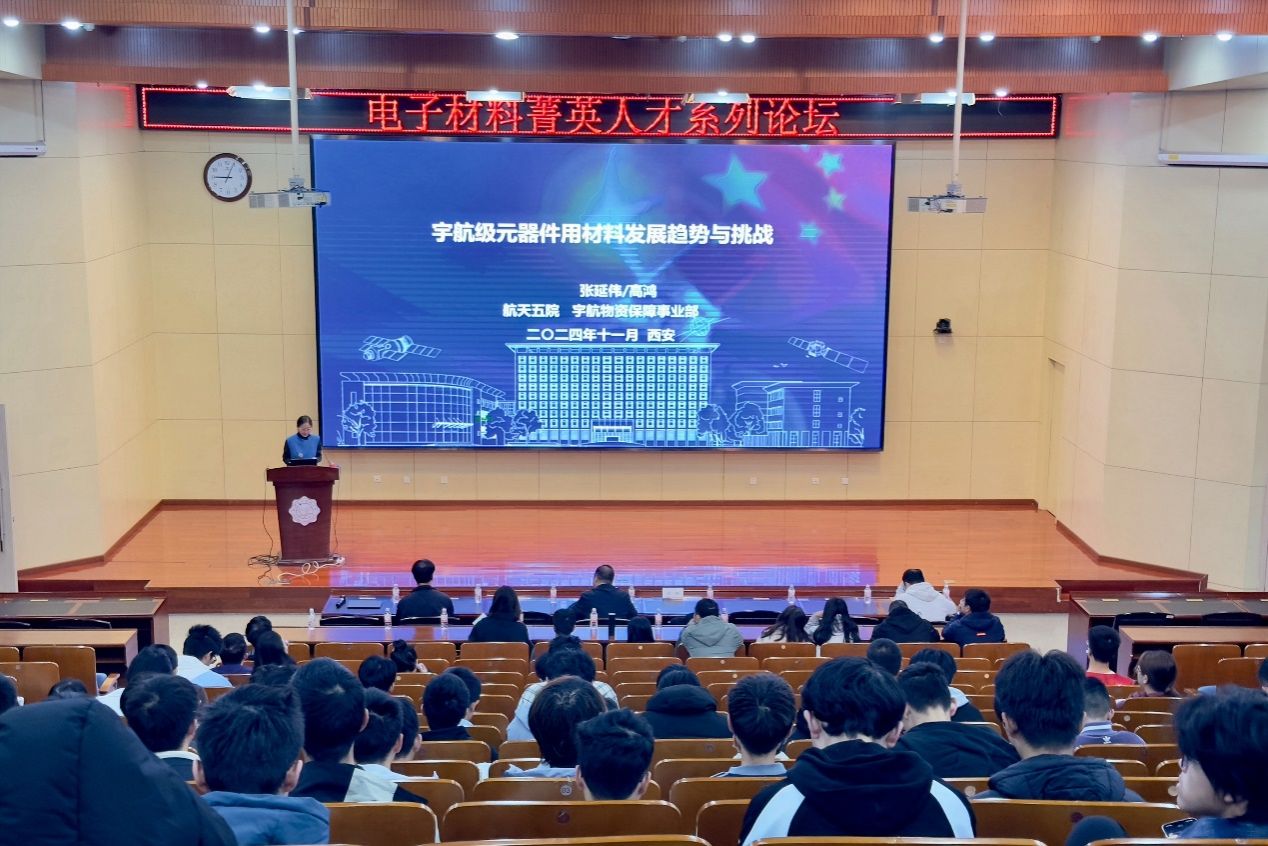 习近平总书记曾指出“探索浩瀚宇宙,发展航天事业,建设航天强国,是我们不懈追求的航天梦”。高副总师畅谈了航天强国使命与责任,这与巩固提升大国地位、推动社会经济发展、维护国家安全利益、实现航天技术跨越发展密不可分。高副总师指出深空探测具有复杂任务和高可靠性服役的矛盾,复杂环境与长寿命服役的矛盾,高性能与轻量化的矛盾,低成本、高质量、批产化的矛盾等挑战与难点。这些对宇航元器件提出了越来越多的需求,也对电子材料提出新需求。目前我国电子材料还存在诸多不足,如国产材料质量与进口存在差距,国产电子材料替代过程中考核验证不全等问题。最后,高副总师用四个短语做了总结“寓精于料、料要成材、材要成器、器要好用”。希望同学们能“致广大而尽精微”,夯实电子材料基础,支撑航天强国建设。