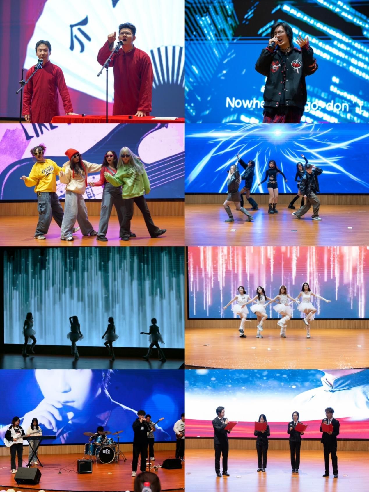 接着炫彩的灯光亮、充满节奏的音乐响燃起了全场氛围,晚会在舞蹈《whiplash》中正式拉开序幕。整场晚会由12个精彩节目组成,涵盖了歌曲、舞蹈、相声、诗朗诵、魔术等多种艺术形式,展现了学院学子们的多才多艺和青春活力。介四相声社带来的《规矩论》用幽默诙谐的语言、妙趣横生的包袱引得全场捧腹大笑,一曲萨克斯独奏《水星记》让观众们沉浸在爱的海洋,歌曲《交换余生》引领全场大合唱,晚会现场气氛热烈,学生们挥舞双手,台上台下互动频繁,为现场师生带来了一场视听盛宴。抽奖游戏环节更是将晚会的热烈氛围推向高潮,随着主持人宣布抽奖开始,全场目光聚焦舞台,幸运儿们在众人的羡慕与祝福声中上台领取奖品。