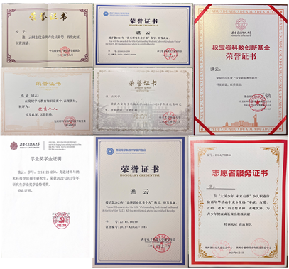志愿实践铸牢初心使命。谯云保持乐观积极态度,勤勉于实践,热心投身于志愿服务活动。2023年9月-2024年9月,她担任学院研究生会副主席,组织“鲜电下午茶”主题沙龙、科学家精神主题知识竞赛和篮球比赛等多项活动,加强了学院研究生的凝聚力,一定程度上提升了同学们的身心健康水平;担任国家重点实验室原子力显微镜测试员,专注解决测试期间出现的各类技术问题,为广大师生提供良好的测试服务环境;积极参加学校和校博物馆、校史馆组织的志愿服务活动,用真诚和热情为学校师生做好服务工作;主动将自己宝贵的科研心得无私地传授给师弟师妹们,通过思想,实践和学涯规划等多方面引领,助力材料学子全面发展、成长成才。这些宝贵的经历,让谯云深刻认识到,作为一名共产党员,其先锋模范作用的根本在于不忘初心、不负青春、矢志不渝地为国家与人民贡献自己的力量,以实际行动践行党的宗旨。